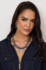 The Patterned Porcelain Bead Pearl Hoops in Blue feature stained glass beads and faux pearls on a classic hoop silhouette. Finished with a secure clasp back, they’re a subtle statement piece.
