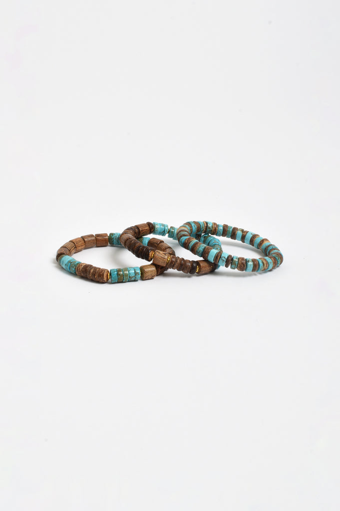 Trio Stone and Timber Stretch Bracelet Set (Turq/Choc)