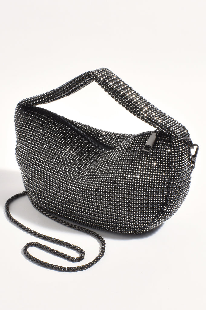 Briar Rhinestone Slouchy Mini Bag (Black)