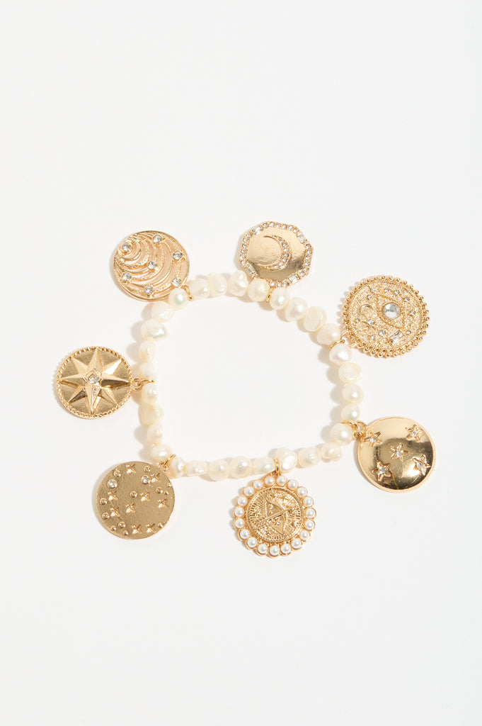 Freshwater Pearl Charms Bracelet (Gold)