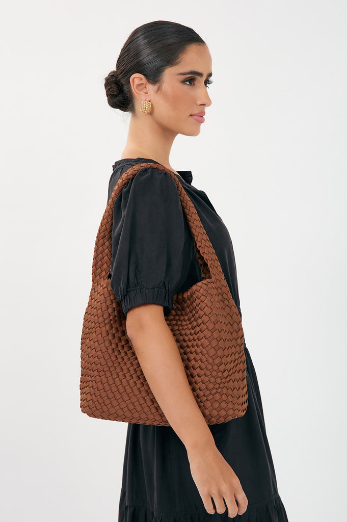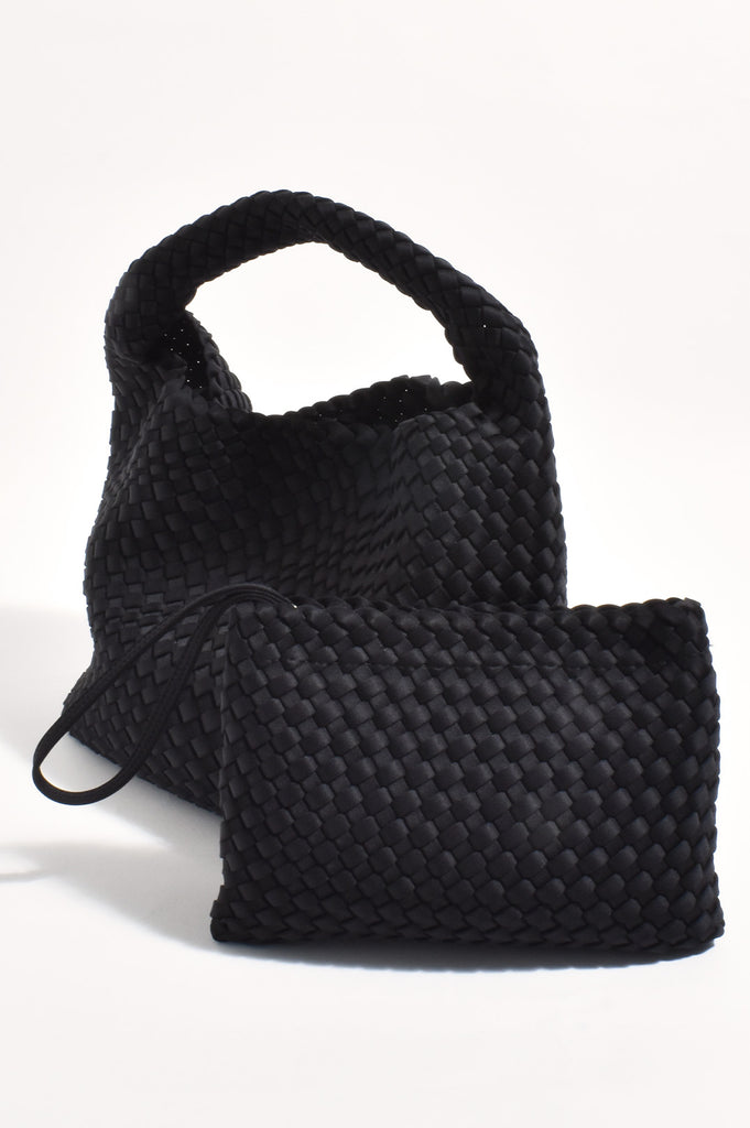 Kaia Neoprene Woven Tote with Pouch (Black)