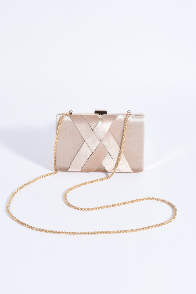 Marjorie Plait Velvet Structured Clutch (Nude)