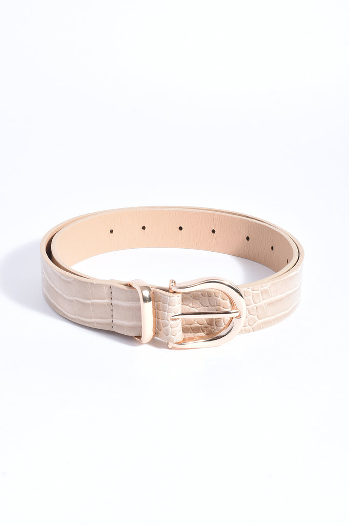 Metal Buckle Croc Jeans Belt (Camel)
