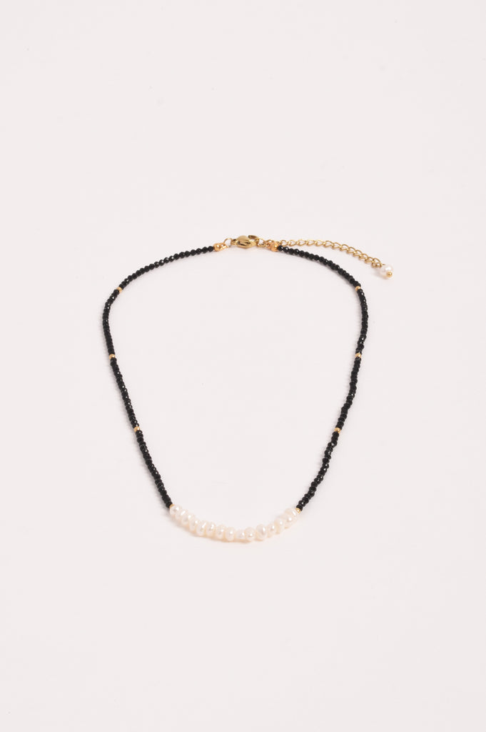 Pearl Panel Glass Bead Necklace (Black)