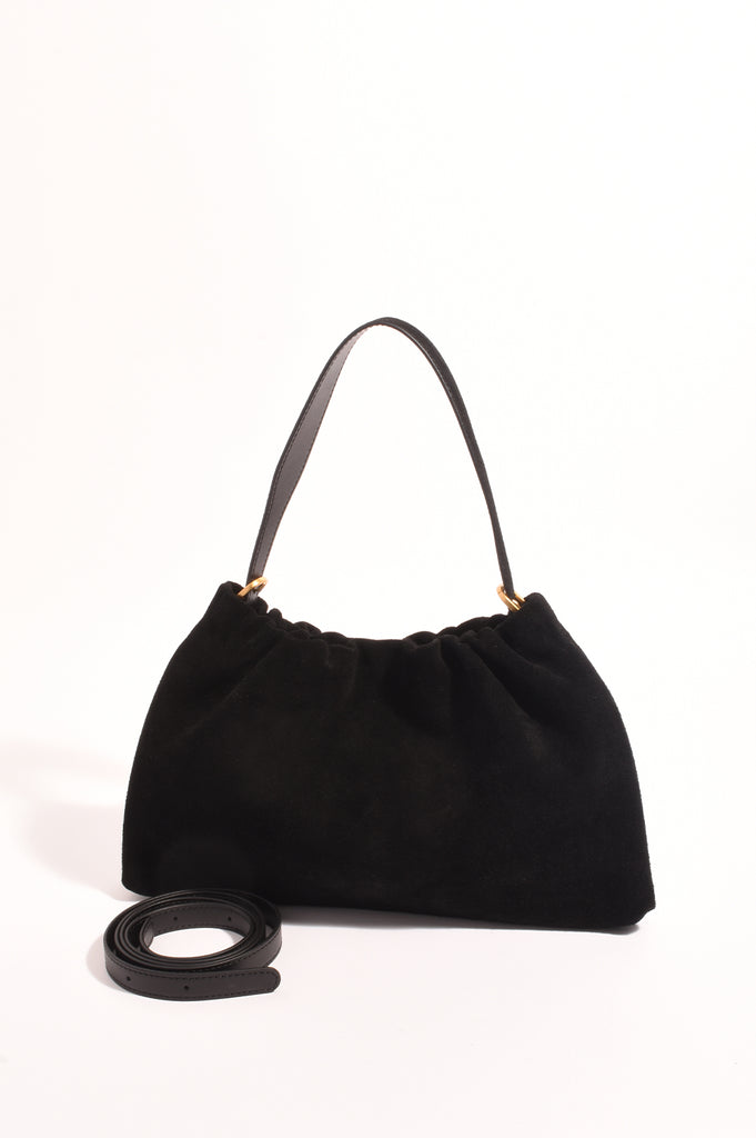 Tabatha Suede Gathered Top Shoulder Bag (Black)