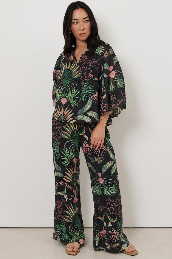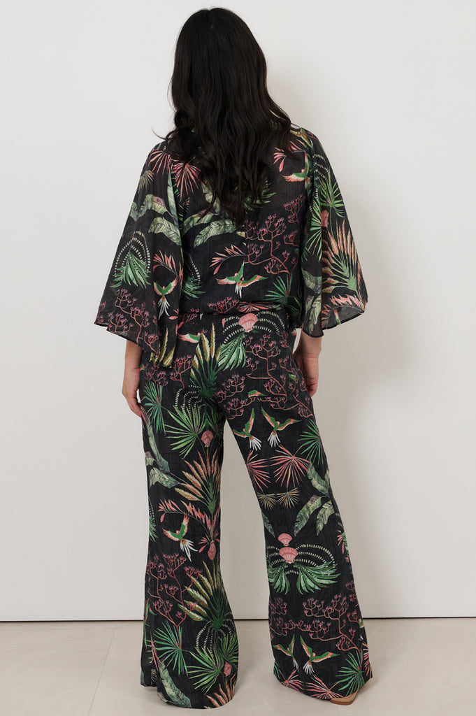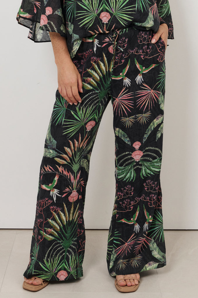 The Asani Wide Leg Pant in Print is crafted from a soft rayon blend and features our exclusive adorne print. Designed with a relaxed, wide-leg silhouette, elasticated drawstring waist, and functional side pockets.