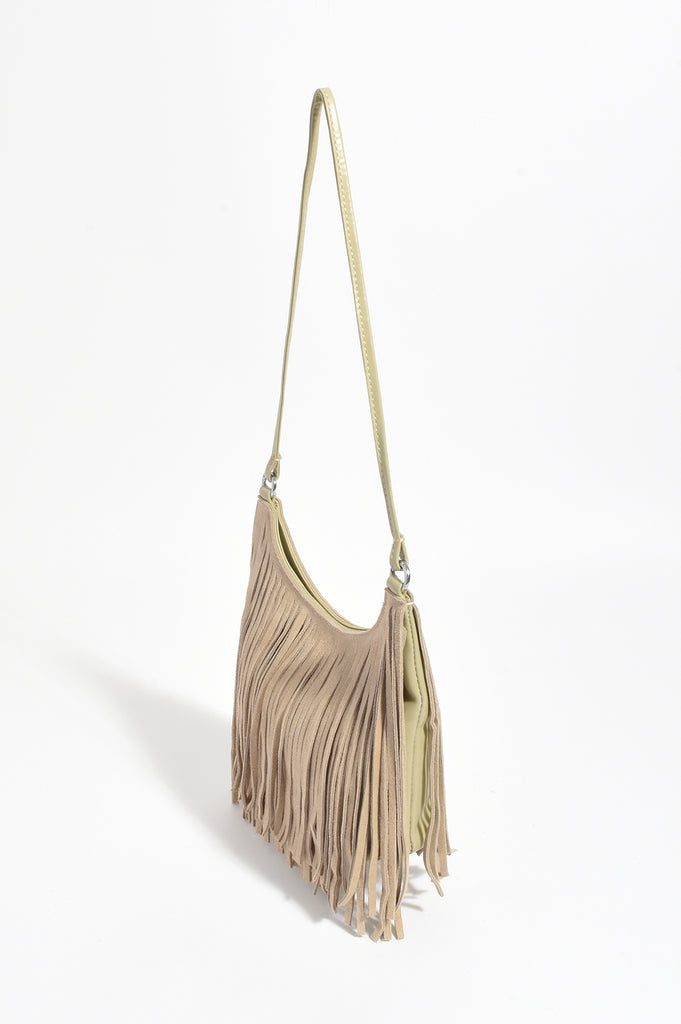 Kelsey Leather Suede Fringe Mini Bag (Camel)