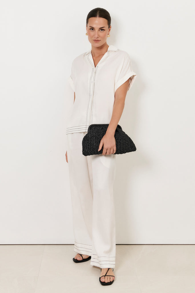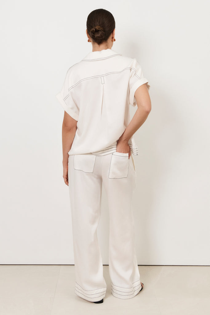 Lana Contrast Stitch Pant (White)