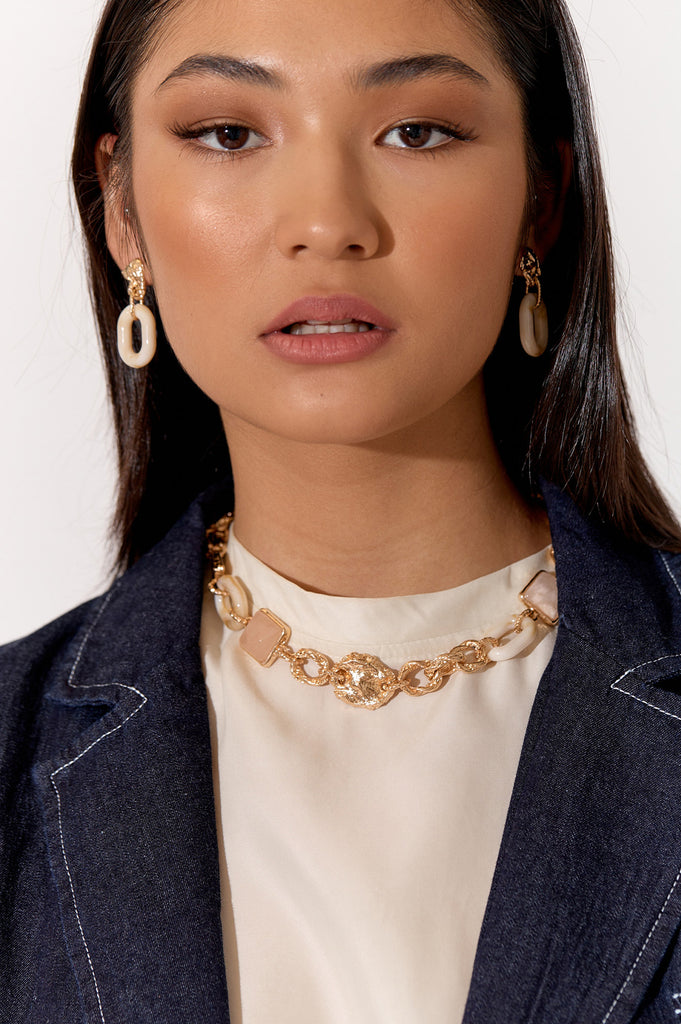 Make your look luxe with stunning neutral ascents with the addition of our Metal Resin Link Earrings, perfect of any occasion.