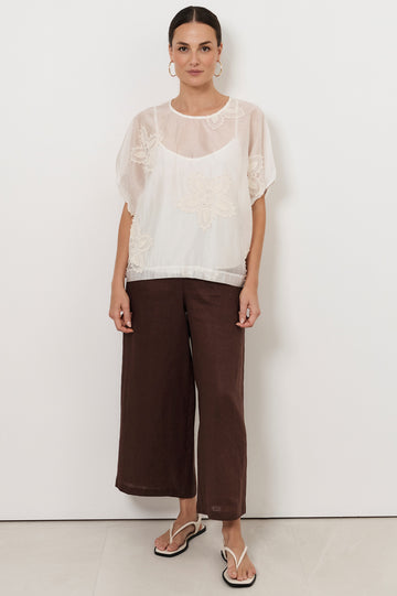 Phoebe Appliqué Flower Top (Ivory)