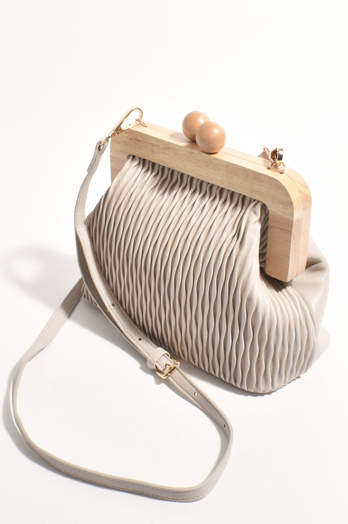 Piper Wavy Timber Frame Clutch (Mocha/Natural)