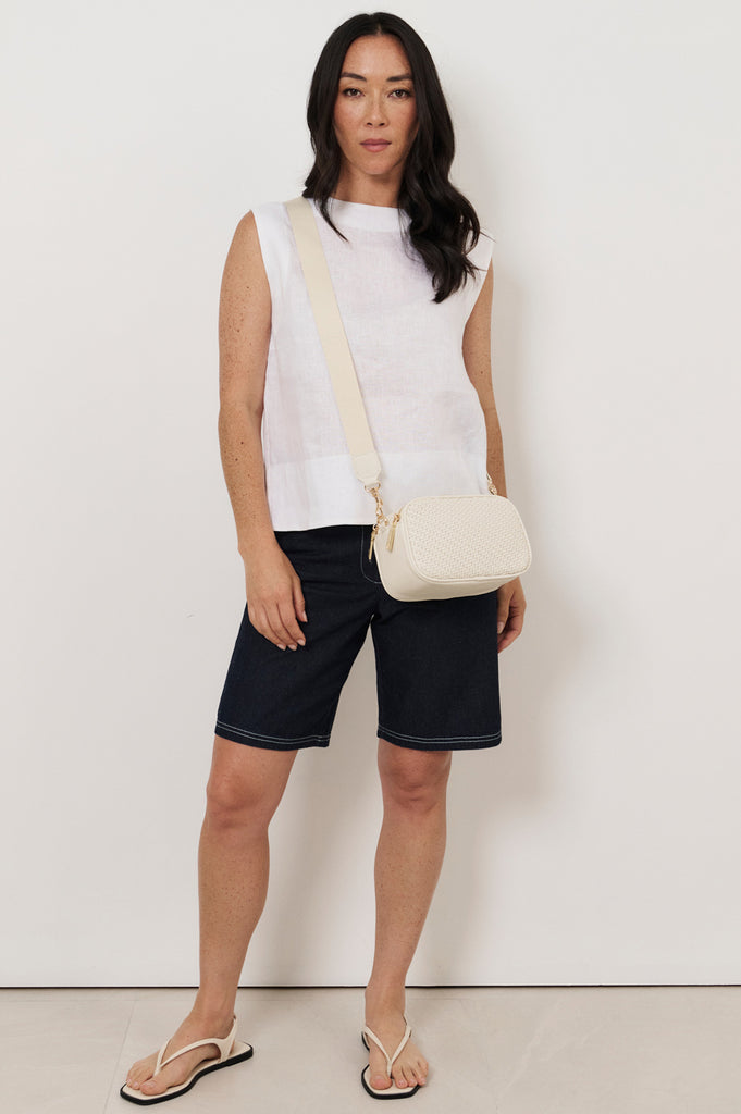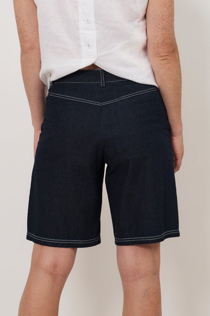 The Robin Lightweight Denim Bermuda Short in Denim features a classic zip and button closure with two front pockets. Cut in a mid-length Bermuda style with a slim fit, they’re crafted from a soft cotton blend.