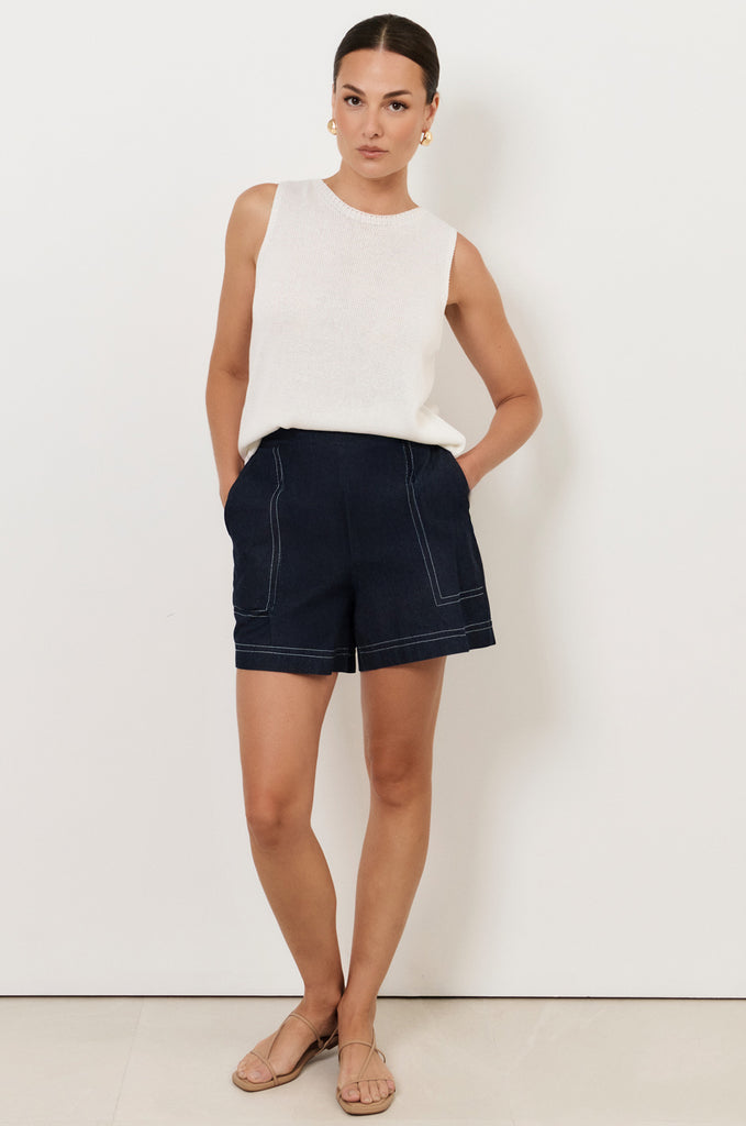 The Trinity Lightweight Denim Short in Denim is designed with an elasticised waist and two front pockets. Featuring contrast stitch detailing and a relaxed fit, it’s crafted from a soft cotton blend with a classic denim look.