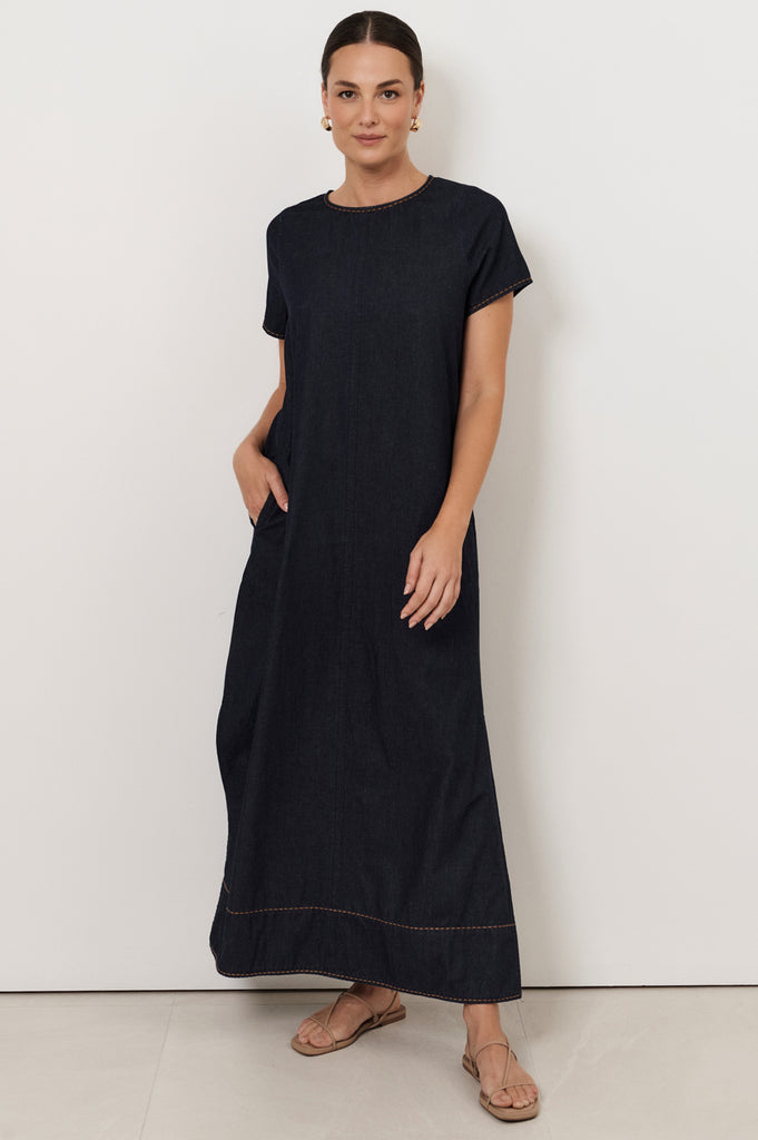 Lottie Light Weight Denim Maxi Dress (Denim)