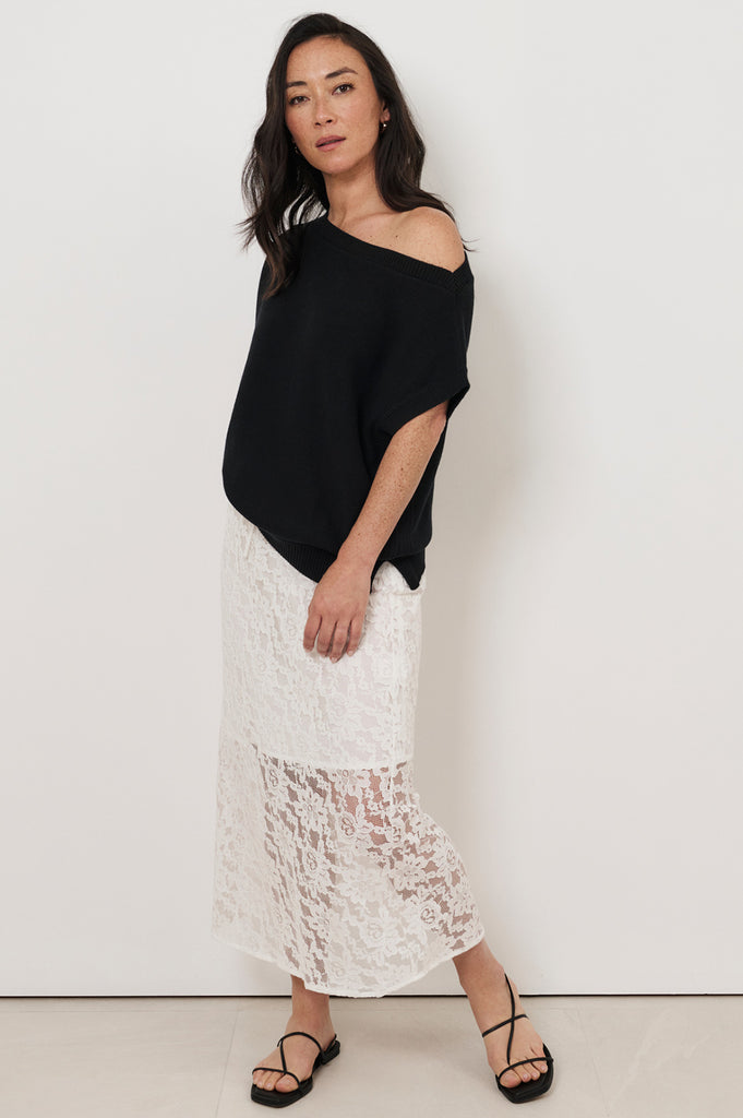 Terrie Angled Neckline Cotton Knit Top (Black)