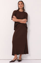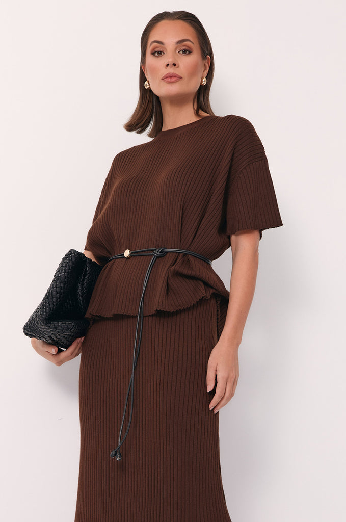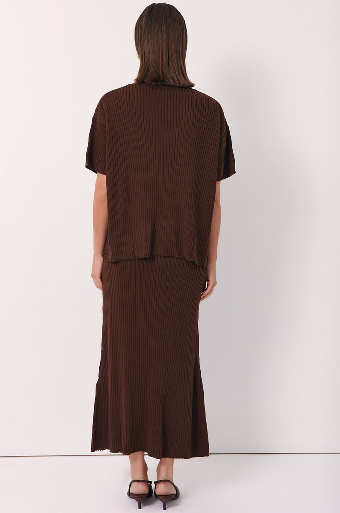 Shani Rib Knit Short Sleeve Top (Chocolate)
