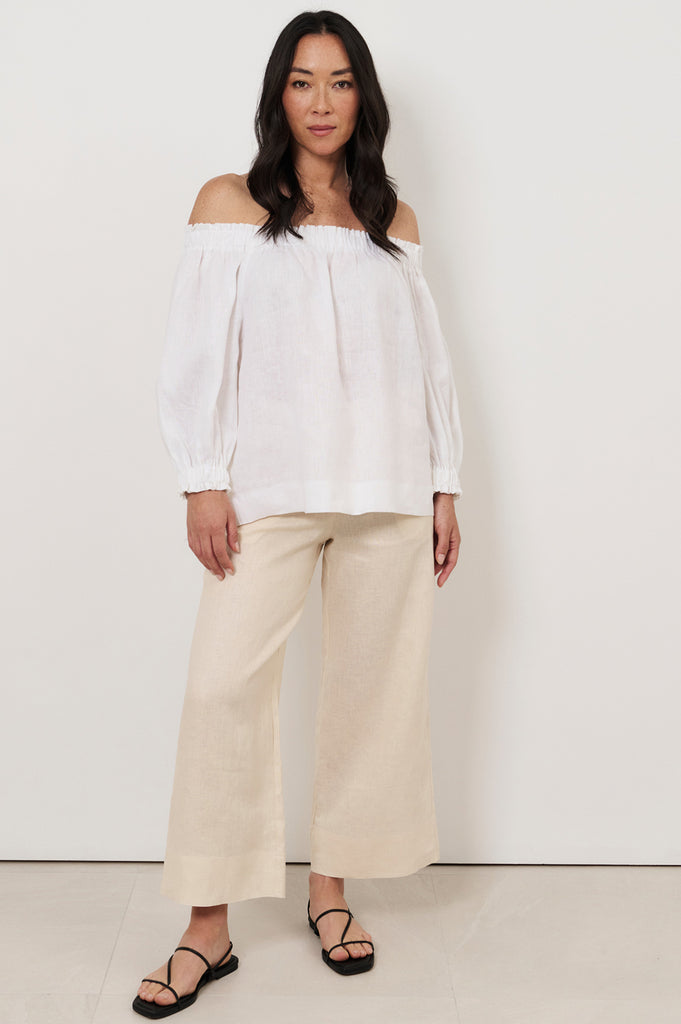 Crystal Linen Off The Shoulder Top (White)