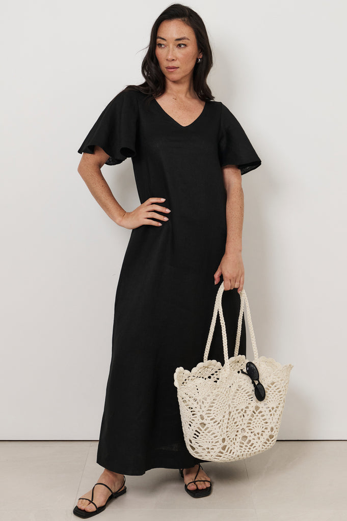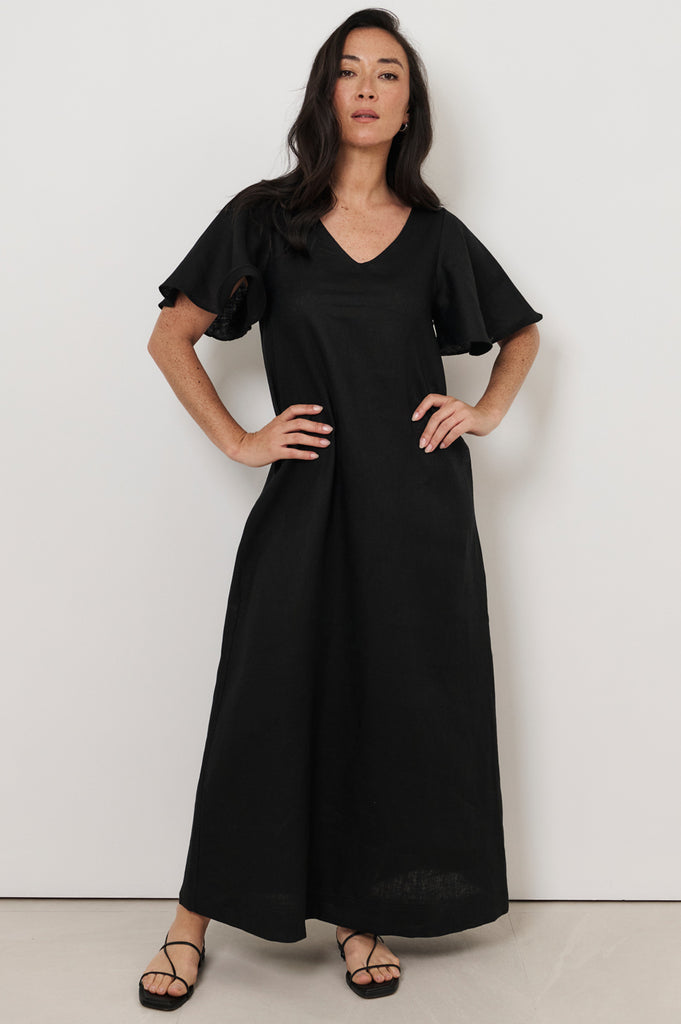 Theo Linen Maxi Dress (Black)