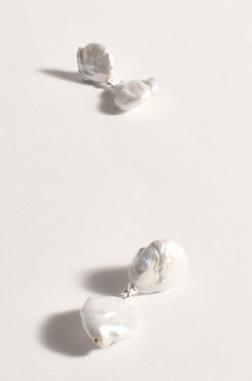 Button Pearl Classic Drop Earrings (Cream/Silver)