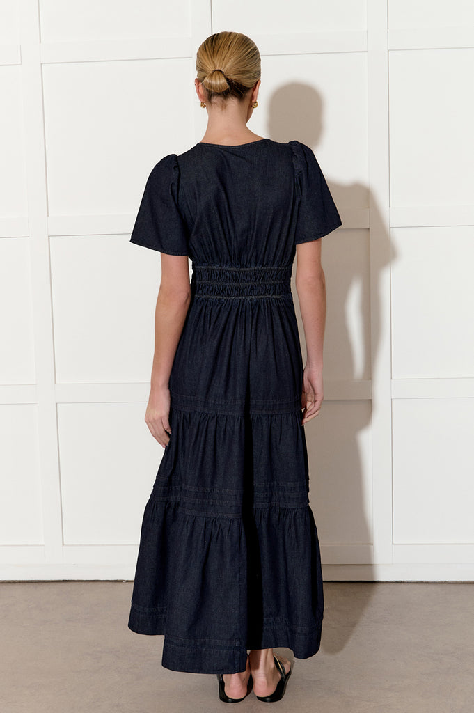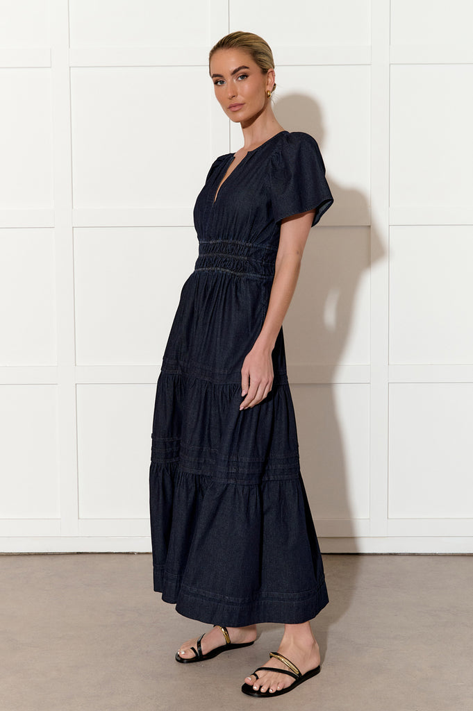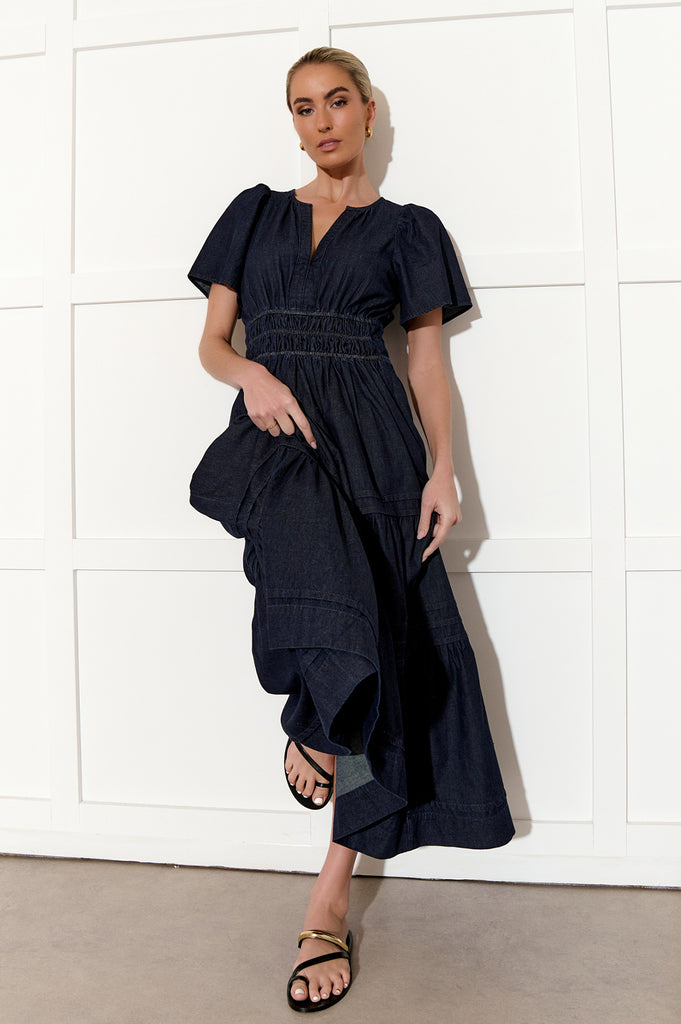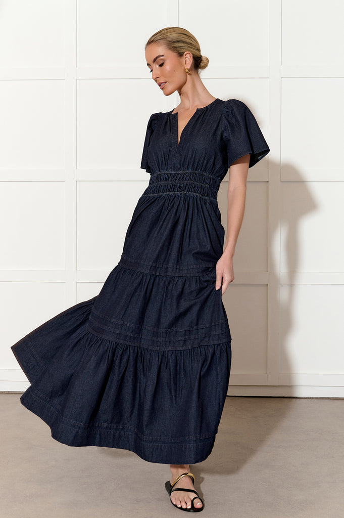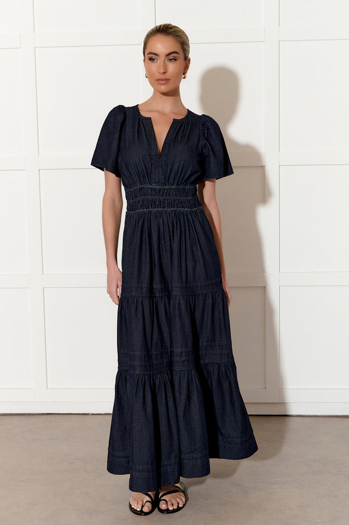 Eliana Light Weight Denim Maxi Dress (Denim)