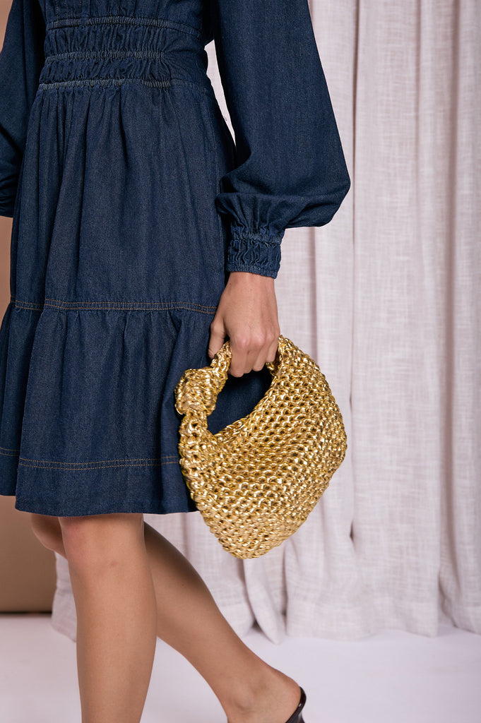 Melanie Metallic Weave Shoulder Bag (Gold)