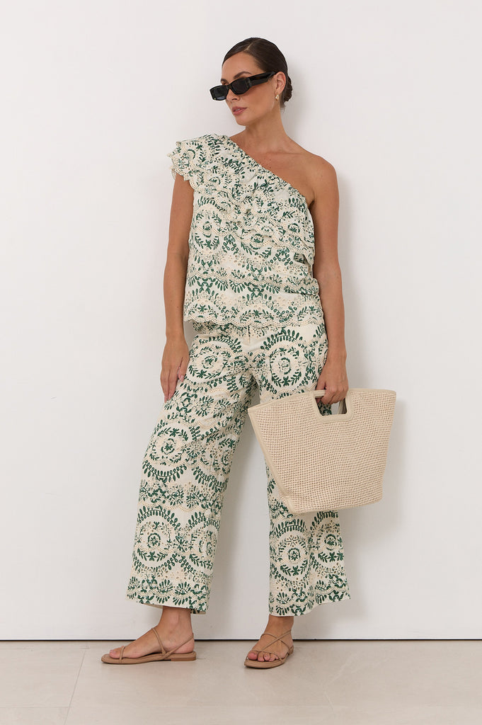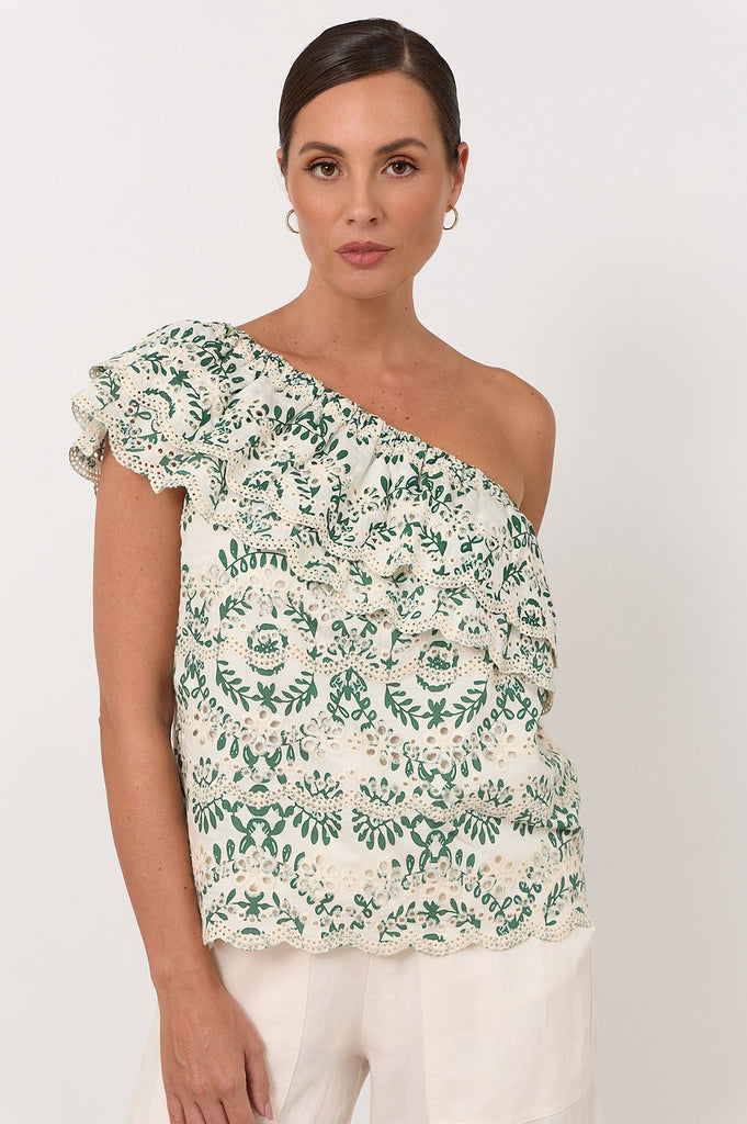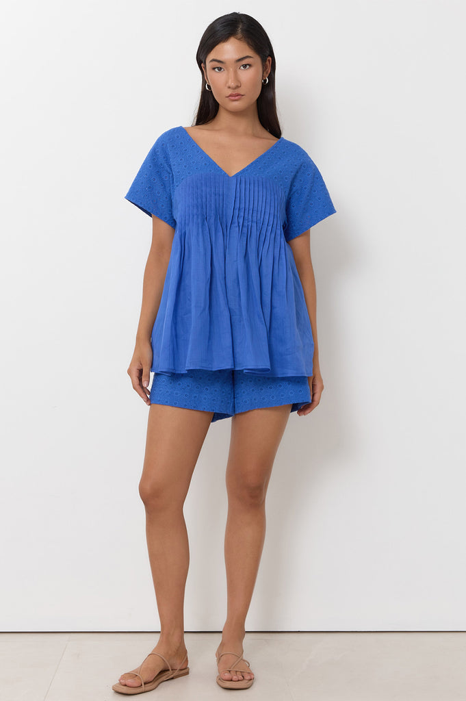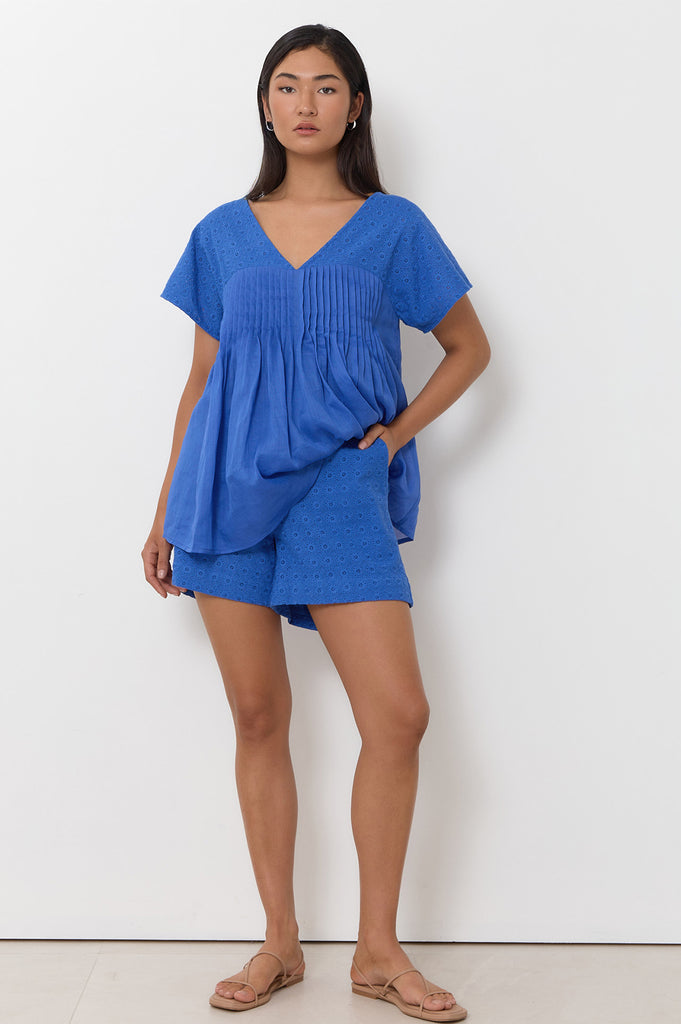 Sidney Lace Pattern Short Sleeve Top (Blue)