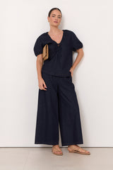Fable Light Weight Denim Culotte Pant (Dark Denim)