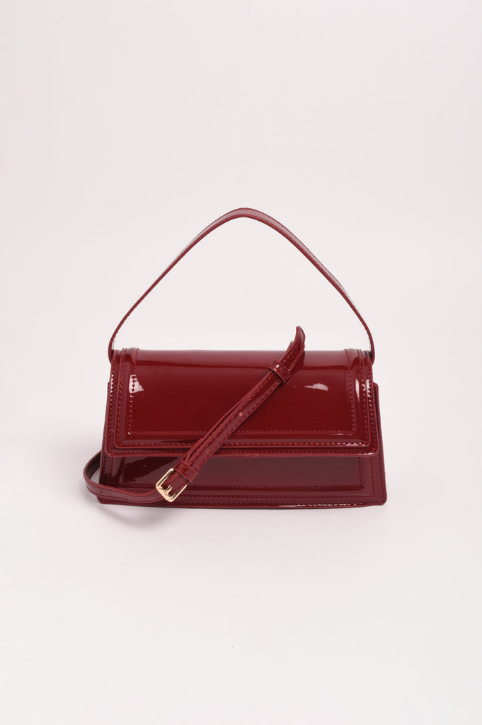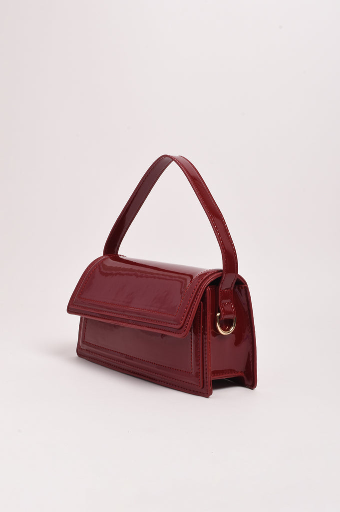 Ava High Shine Structured Small Bag (Burgundy)