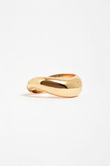 The Chunky Timber Bangle in Natural features a thick, sculptural silhouette with a warped wave design, crafted from smooth timber for a natural finish.