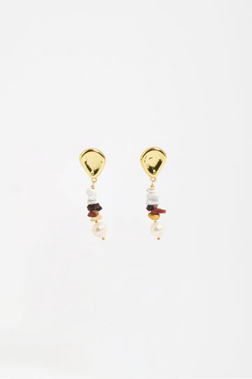 The Freshwater Pearl Stone Chip Drop Earrings in Choc/White feature a mixed stone design accented with freshwater pearls. Secured with a stud-back closure.