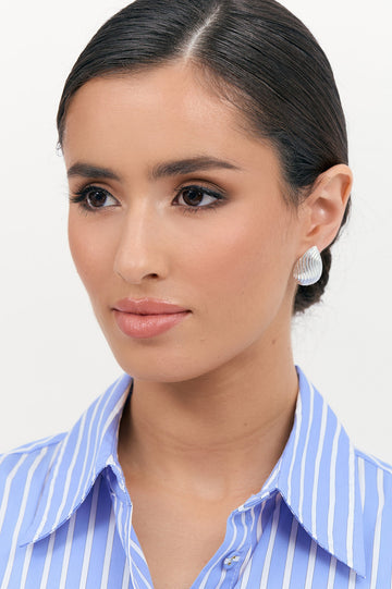 Lined Teardrop Metal Earrings (Silver)