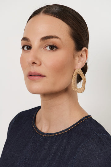 The Wrapped Organic Shape Earrings in Chocolate feature an abstract design wrapped in fabric. Secured with a stud-back closure.