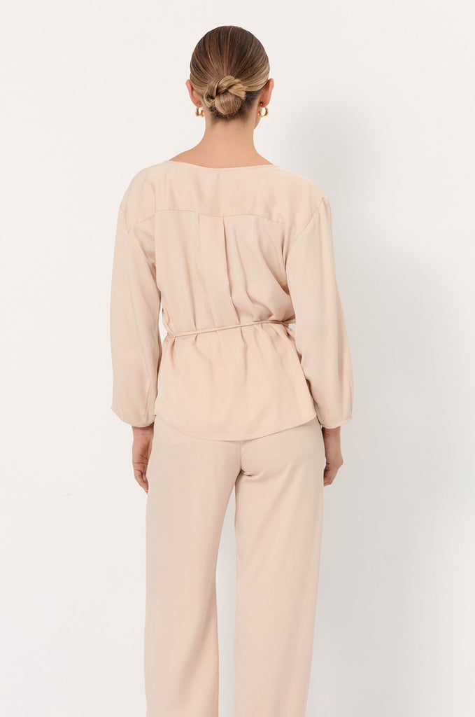 Dana Square Neck 3/4 Sleeve Top (Camel)