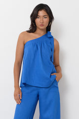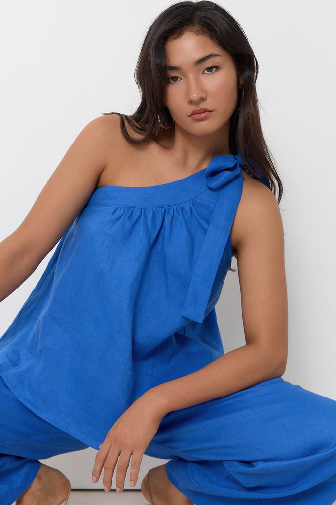 Avalon Wide Leg Linen Pant (Blue)