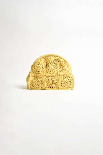 Patterned Curved Paper Weave Clutch (Butter Yellow)