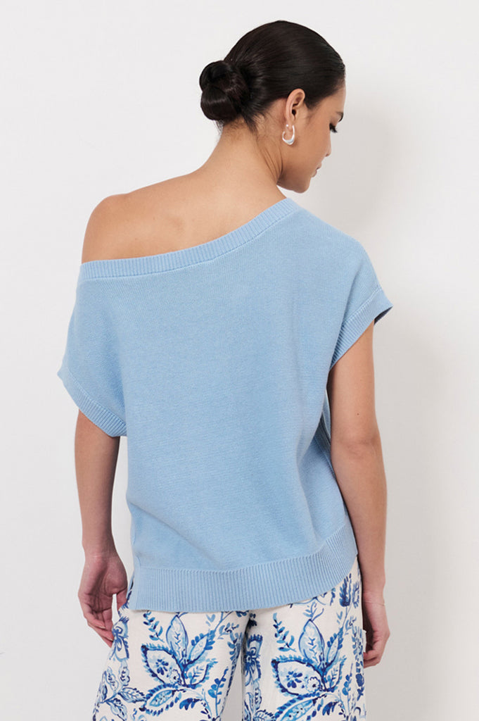 The Terrie Angled Neckline Cotton Knit Top in Blue is crafted from 100% cotton in a relaxed silhouette. Designed with an angled boat neckline and ribbed trims, it’s an easy, lightweight layer for everyday wear.