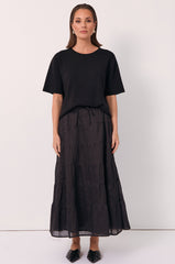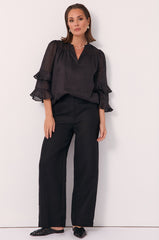 Larissa 3/4 Sleeve Frill Top (Black)