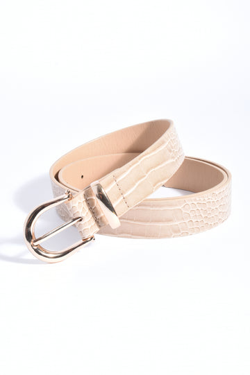 Metal Buckle Croc Jeans Belt (Camel)