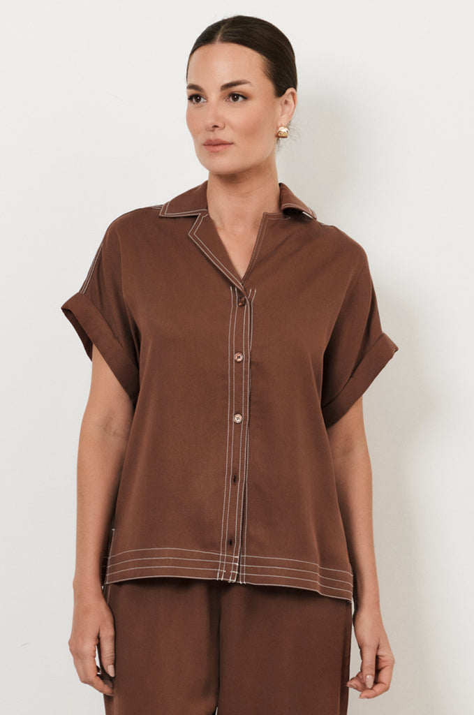 It's all in the detail and Our range of short sleeve tops feature a variety of features including v-necks, square necks, round necks and high necks, button through styles, pin-tucking, frills and tiers all with a flattering relaxed style fit and created in new season brights, neutrals and statement prints.