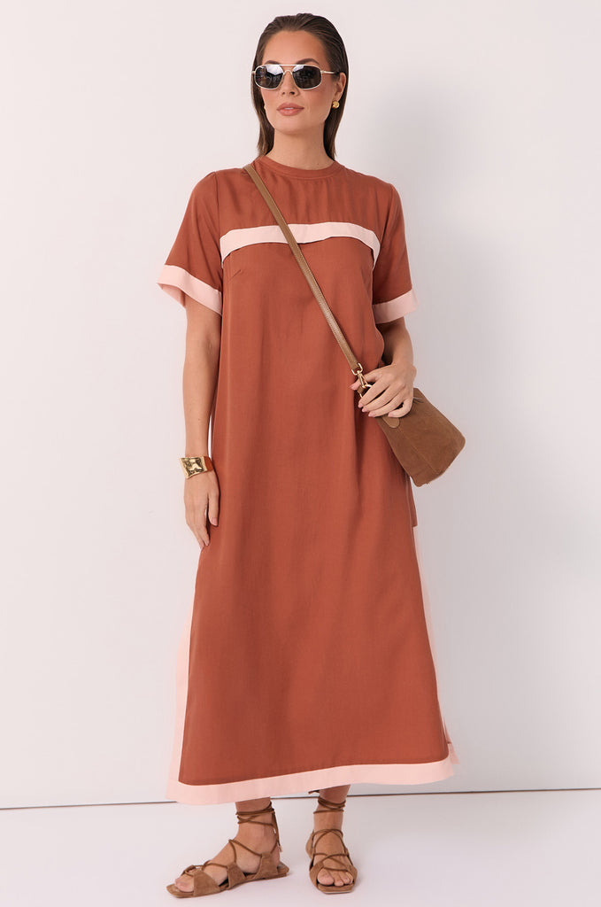 Sienna Short Sleeve Maxi Dress (Tan)