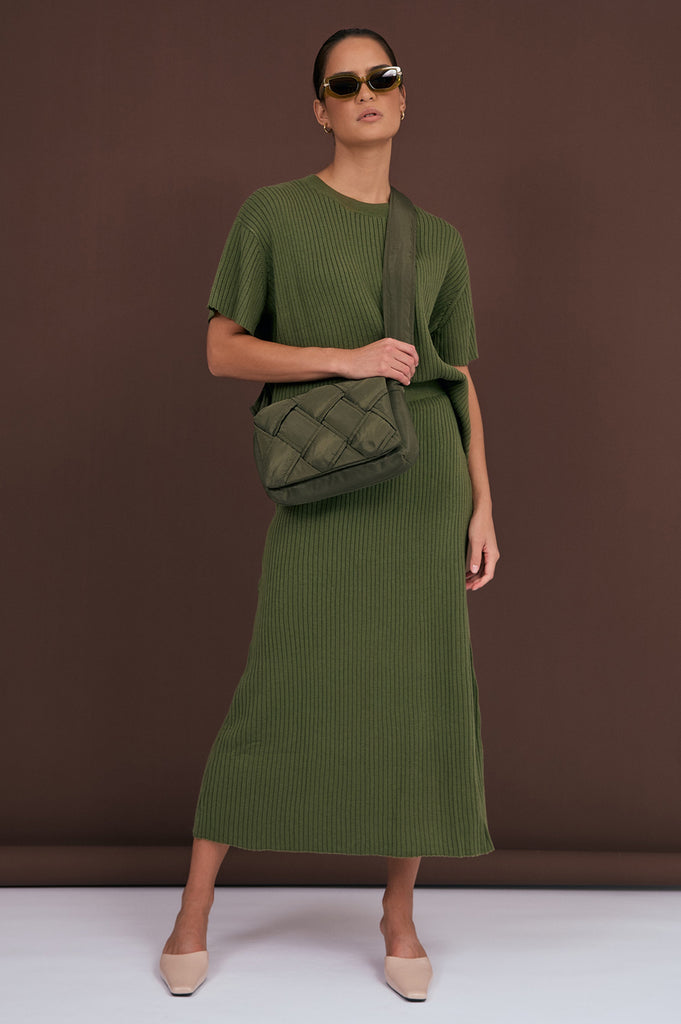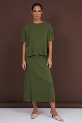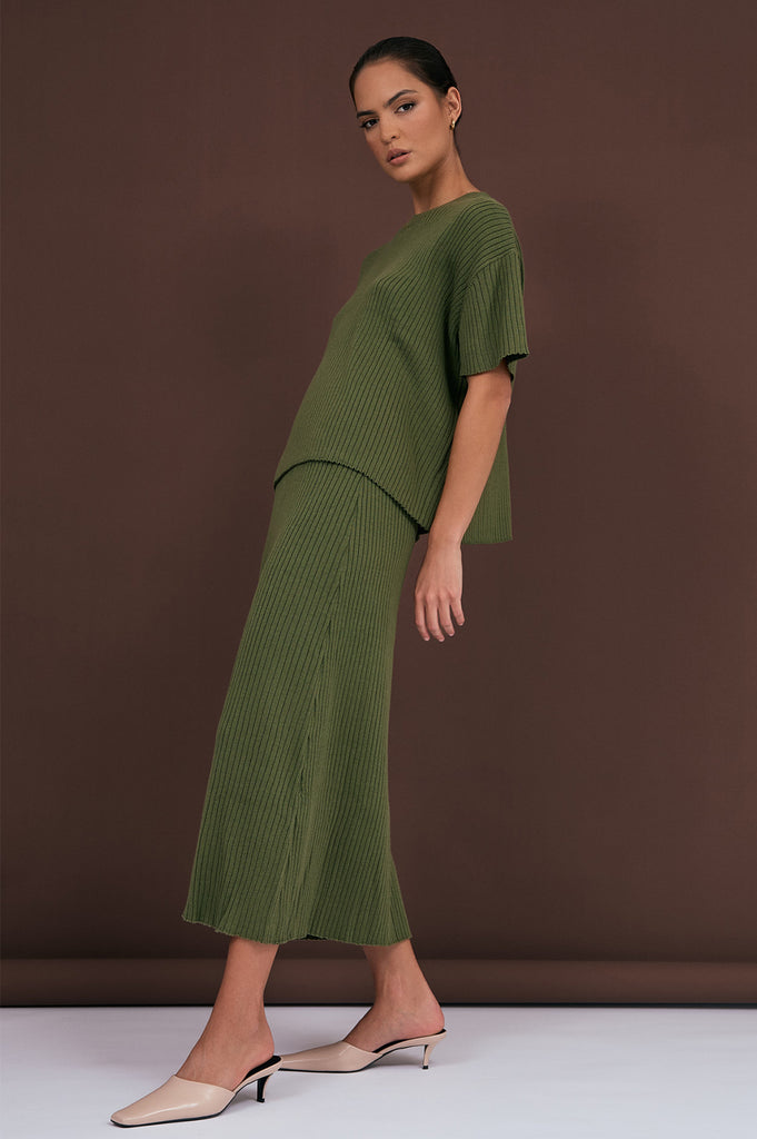 Taylor Rib Knit Midi Skirt (Khaki)