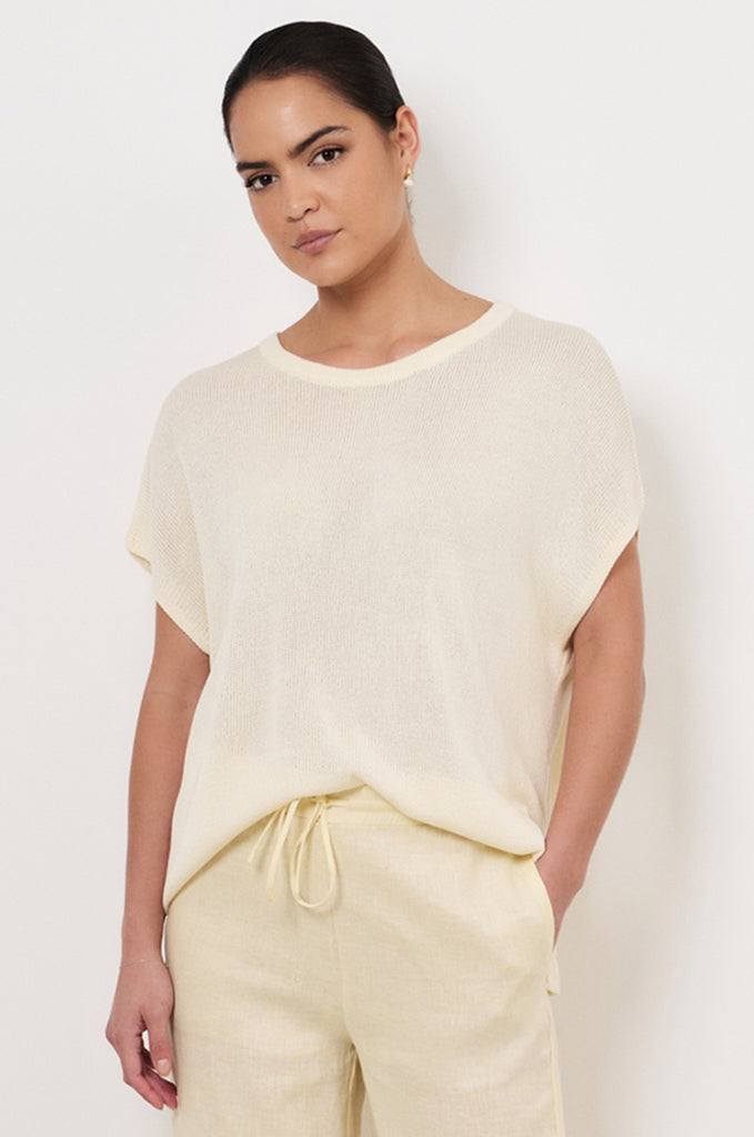 Terrie Angled Neckline Cotton Knit Top (Stone)