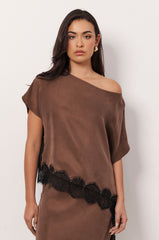 Fortune Cupro Lace Detail Skirt (Chocolate)