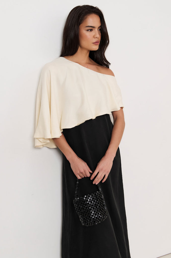 Sia Asymmetric Frill Maxi Dress (Mono)