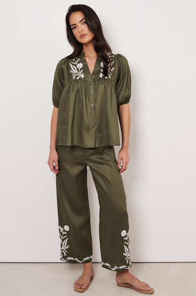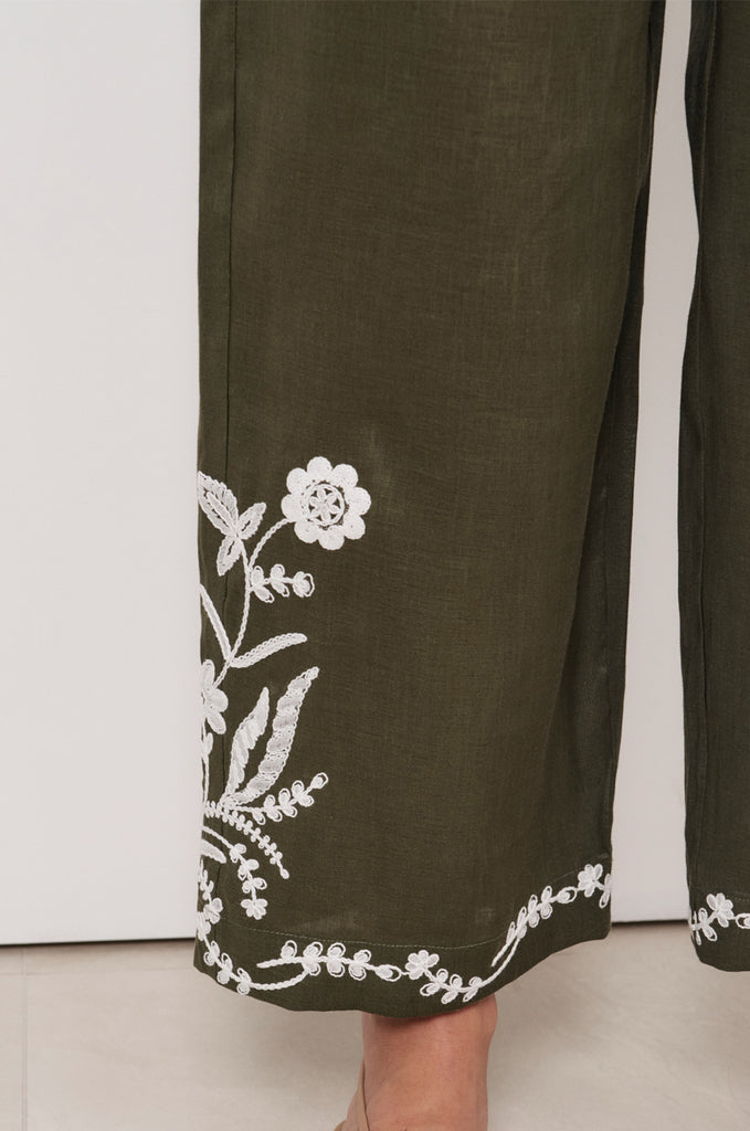 Alessia Embroidered Pant (Khaki)