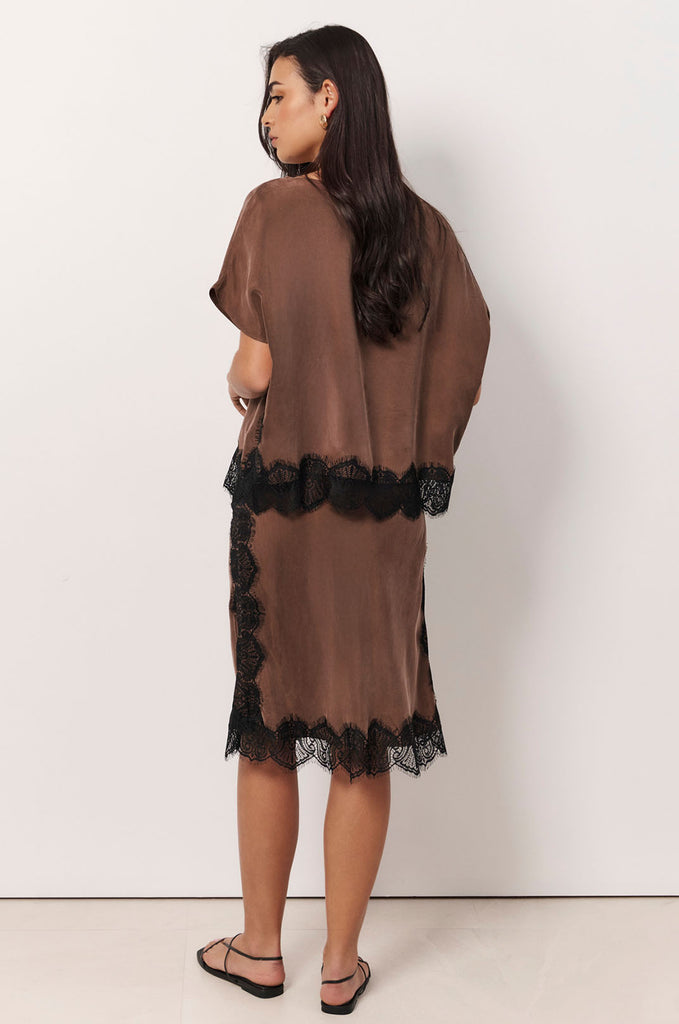 Fortune Cupro Lace Detail Skirt (Chocolate)