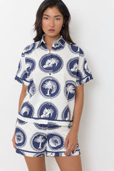 The Haven Whitehaven Printed Short in Navy is crafted from cotton poplin in our exclusive adorne coastal print. Designed with side pockets, plait trim detailing, belt loops and a button-zip closure, they’re fully lined for comfortable everyday wear.