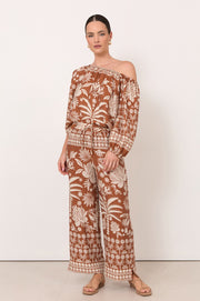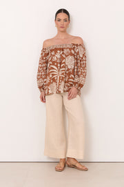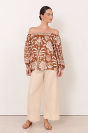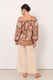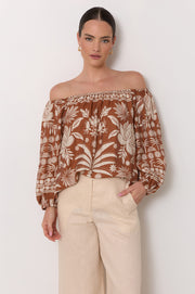 The Kelsey Top is cut in an exclusive adorne Hawaii print with an off-the-shoulder neckline. It features long puff sleeves with elasticated cuffs and a straight hem. Unlined for a lightweight finish.
