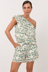The Khloe Embroidered Top in Print features an exclusive Adorne print with delicate embroidered motifs. Designed with a mandarin collar and V-neckline, it’s a relaxed button-down style finished with a scalloped hem and full lining.