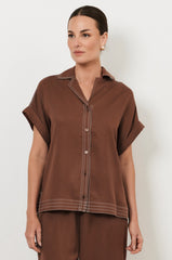 The Lana Contrast Stitch Pant in Chocolate is a relaxed, straight-leg style crafted from 100% Tencel. Featuring a drawstring closure with an elasticised waist, they include two front pockets, two back pockets and contrast stitch detailing.